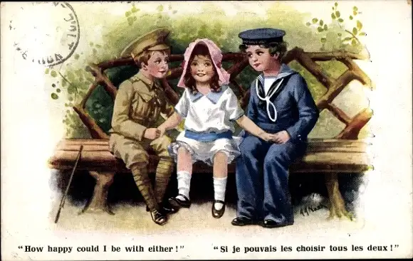Künstler Ak Nash, A. A., Mädchen mit Soldat und Seemann