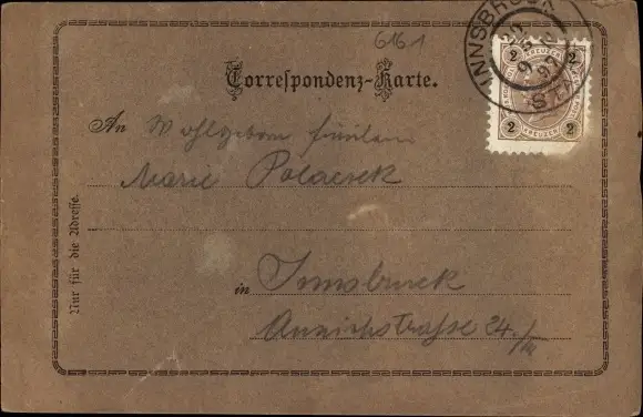 gelaufen 1897, Eckknick rechts unten, Durchbruch unten, sonst guter Zustand
