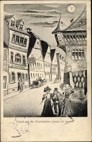 Künstler Ak Neckargemünd am Neckar, Griechische Weinstube Zur Stadt Athen, Betrunkene