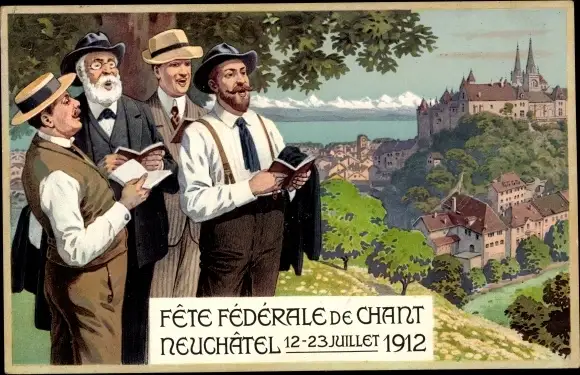 Künstler Ak Neuchâtel Neuenburg Stadt, Sängerbundesfest 1912