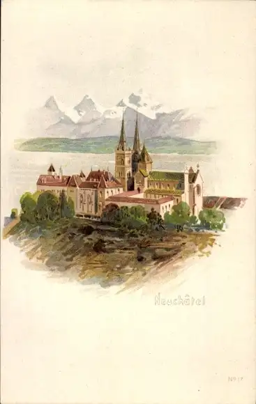 Künstler Ak Neuchâtel Neuenburg Stadt, Schloss, Kirche