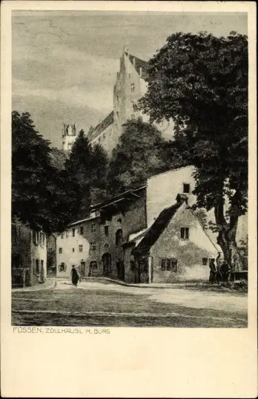 Künstler Ak Neumann, J., Füssen im Ostallgäu, Zollhäusl mit Burg