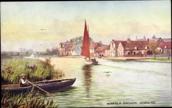 Künstler Ak Norfolk Broads East England, Horning, Ruderboot, Segelboot