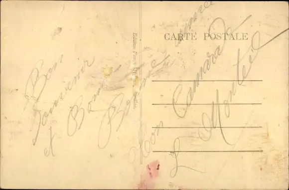 ungelaufen, Eckknick rechts oben, Rückseite beschrieben, rückseitig Klebereste, sonst guter Zustand
