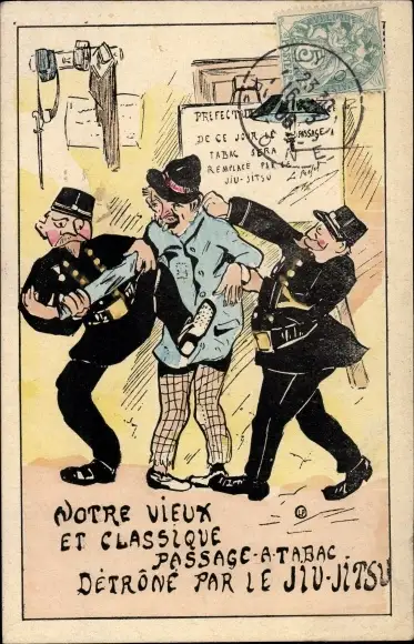 Künstler Ak Notre vieux et classique passage a tabac, betrunkener Mann, Polizisten