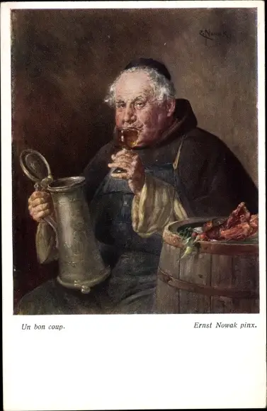 Künstler Ak Nowak, E., Mönch mit Weinglas