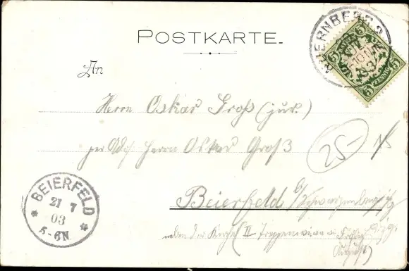 gelaufen 1903, Eckknick links oben, sonst guter Zustand