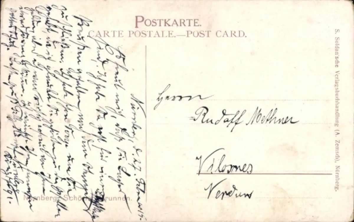 Von meiner Bestellung am Dienstag 12.01.2026 um 20:52 Uhr und Überweisung des Betrags am gleichen Tag um 22:26 Uhr bis zur Ankunft der Ansichtskarte bei mir am 21.01.2026 um ca. 14:00 Uhr dauert der gesamte Vorgang rd. 9 Tage - es wäre wünschenswert, wenn diese Zeiten dazwischen sich verkürzen ließen - Danke und Gruß - Heinz Vorderwülbecke (andere Ansichtskartenverkäufer sind da wesentlich schneller).