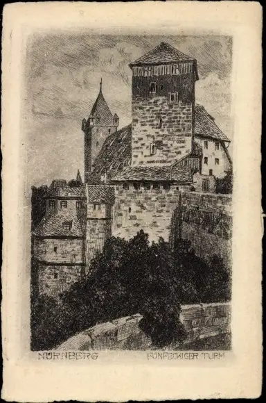 Künstler Ak Nürnberg in Mittelfranken, Fünfeckiger Turm