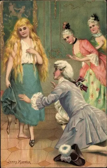 Künstler Ak Nyström, J., Aschenbrödel, Märchen, Kniender Prinz