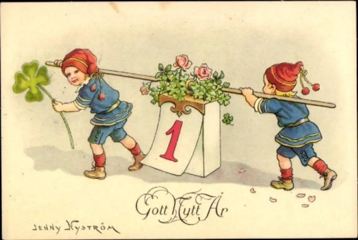 Künstler Ak Nyström, Jenny, Neujahr, Klee, Kalender