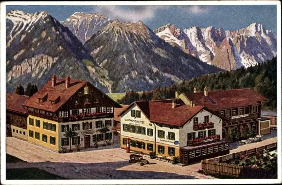 Künstler Ak Oberau in Oberbayern, Hotel Gasthof zur Post