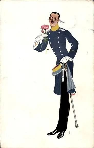 Künstler Ak Offizier in Uniform, Rose