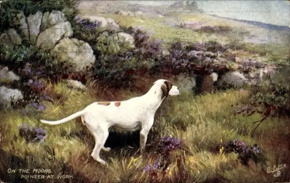 Künstler Ak On the Moors, Pointer at Work, Jagdhund
