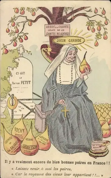 Künstler Ak Ordensschwester am Birnenbaum sitzend