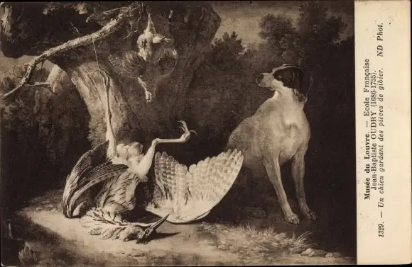 Künstler Ak Oudry, J. B., Musee du Louvre, Un chien gardant des pieces de gibier