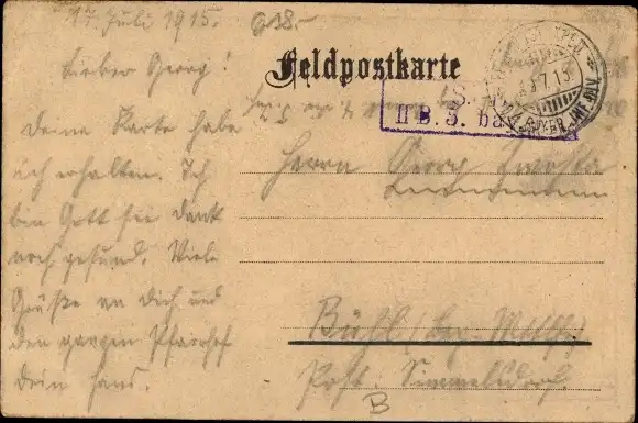 Zustand, siehe Scan, gelaufen, 1915 - ca 14 cm X 9 cm