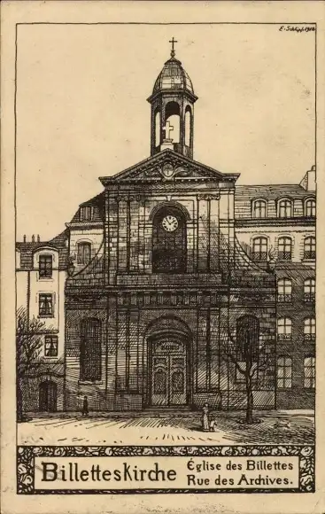 Künstler Ak Paris IV, Rue des Archives, Église des Billettes