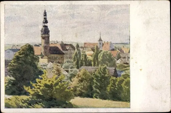 Künstler Ak Paroubek, Jan, Domažlice Taus Region Pilsen, Blick auf den Ort
