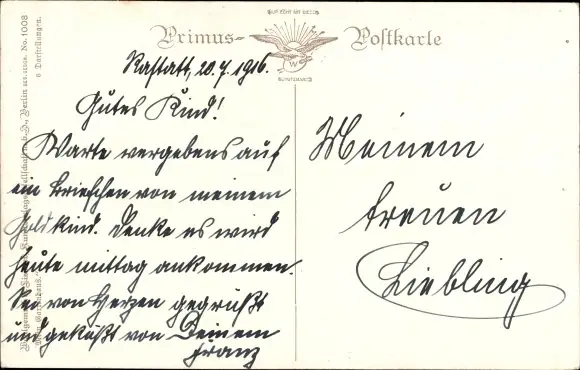 Zustand, siehe Scan, ungelaufen- Primus 1008 - ca 14 cm X 9 cm