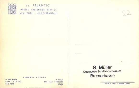 Künstler Ak Passagierschiff SS Atlantic, Home Lines