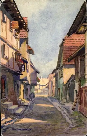 Künstler Ak Paul Mannsfeld, Elsass Haut Rhin, Straßenpartie