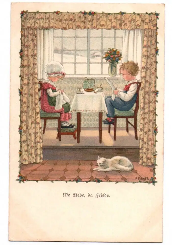 Künstler Ak Pauli Ebner Wo Liebe da Friede Katze 1917