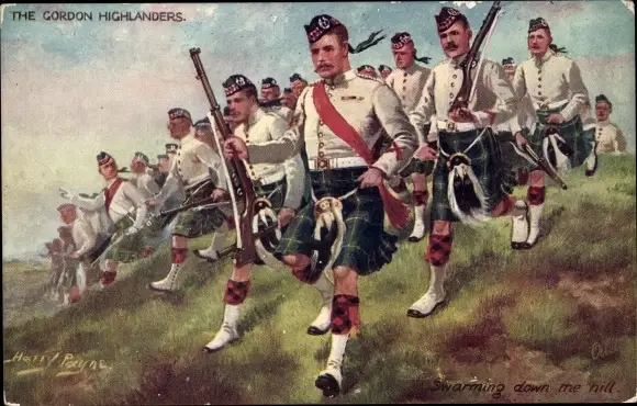 Künstler Ak Payne, H., The Gordon Highlanders, Swarming down the hill