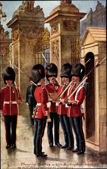 Künstler Ak Payne, Harry, Coldstream Guards wechselnde Wachposten vor dem Buckingham Palace
