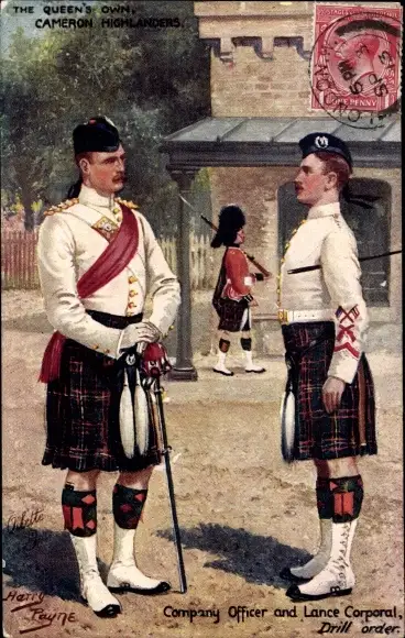 Künstler Ak Payne,The Queen's Own Cameron Highlanders,Gewehr,Officer,Lance Corporal