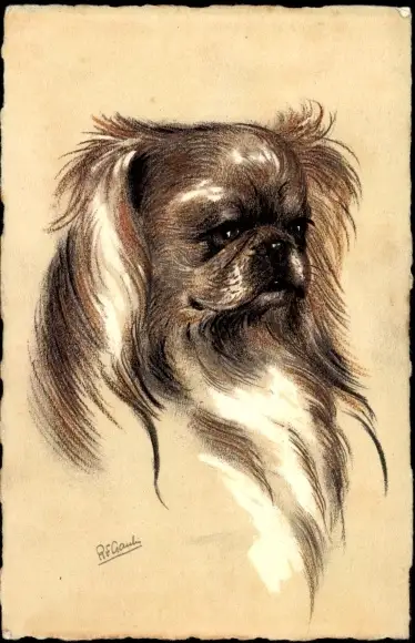 Künstler Ak Pekingese, Pekinese, Hund-Portrait