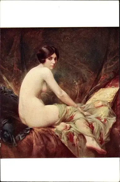 Künstler Ak Penot, A., Nackte Frau, Frauenakt, Bett