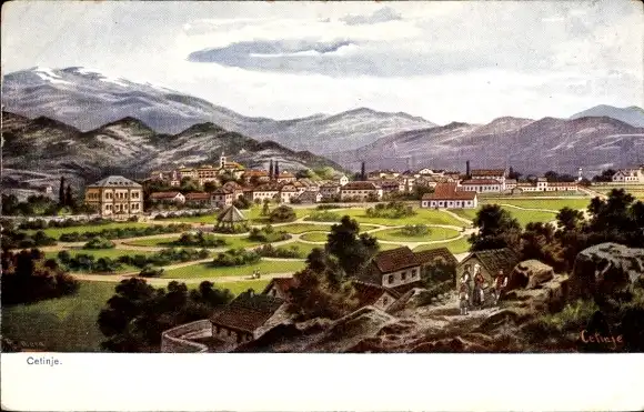 Künstler Ak Perlberg, F., Cetinje Montenegro, Totalansicht
