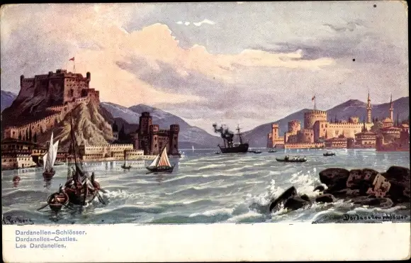 Künstler Ak Perlberg, F., Dardanellen Griechenland, Dardanellen-Schlösser
