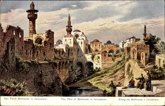 Künstler Ak Perlberg, F., Jerusalem Israel, Teich Bethesda