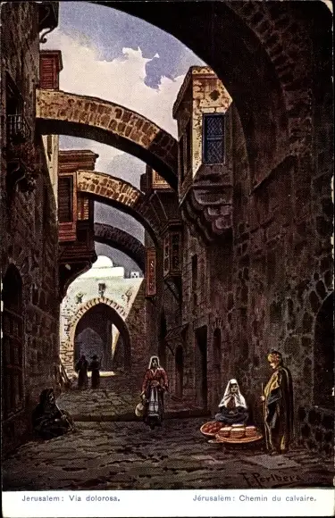 Künstler Ak Perlberg, F., Jerusalem Israel, Via dolorosa, Chemin du calvaire, Kreuzweg