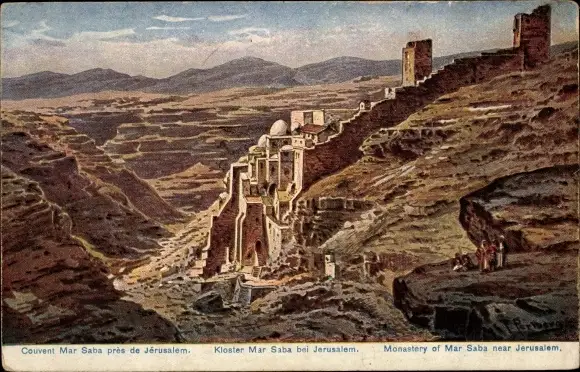 Künstler Ak Perlberg, F., Palästina, Felsenkloster Mar Saba