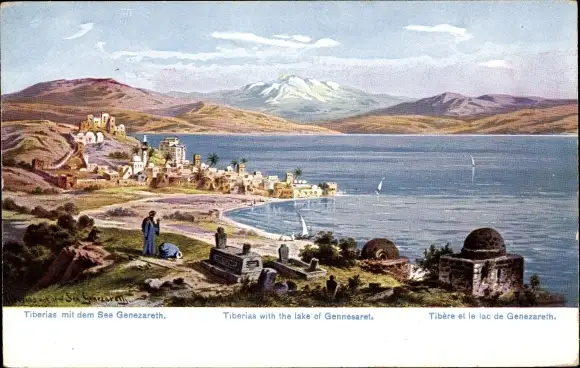 Künstler Ak Perlberg, F., Tiberias Israel, Panorama, See Genezareth