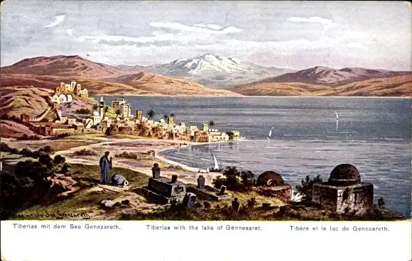 Künstler Ak Perlberg, F., Tiberias Israel, Panorama, Siehe Genezareth
