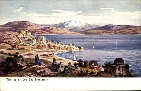 Künstler Ak Perlberg, F., Tiberias Israel, Panorama, Siehe Genezareth
