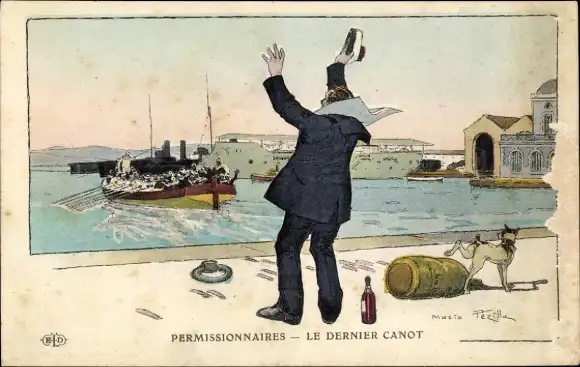 Künstler Ak Permissionnaires, le dernier canot
