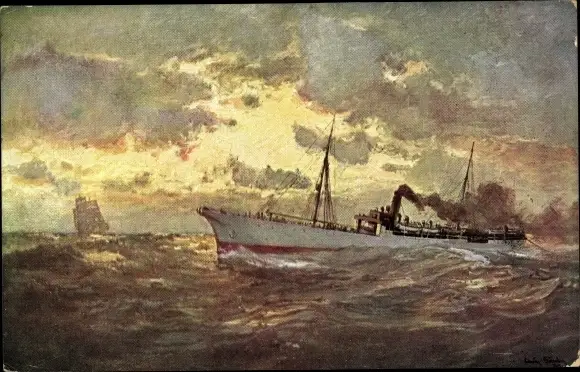 Künstler Ak Personendampfer und Segelschiff auf dem Meer