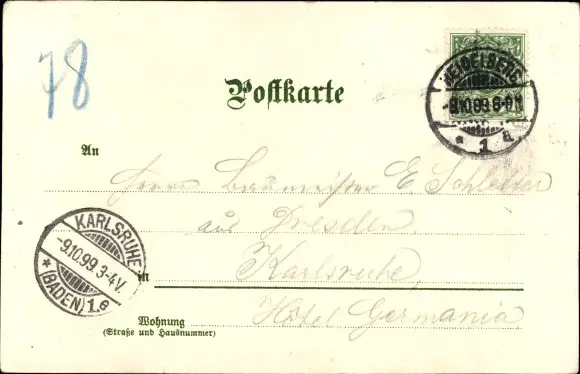 Zustand, siehe Scan, gelaufen, 1899 - ca 9 cm X 14 cm