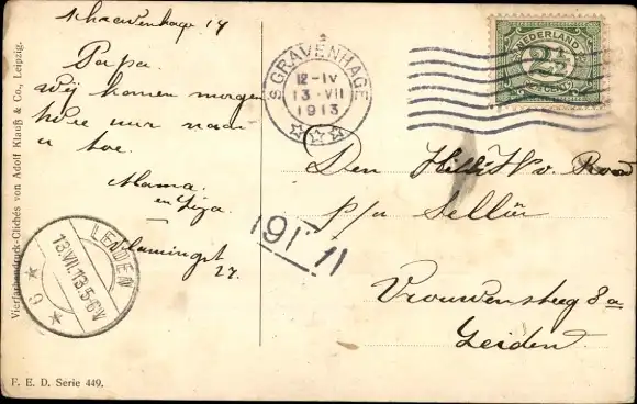 Zustand, siehe Scan, gelaufen, 1913 - ca 14 cm X 9 cm