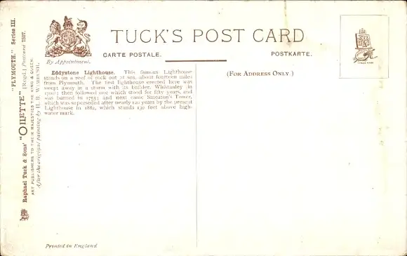 Künstler Ak Plymouth Cornwall England, Eddystone Leuchtturm
