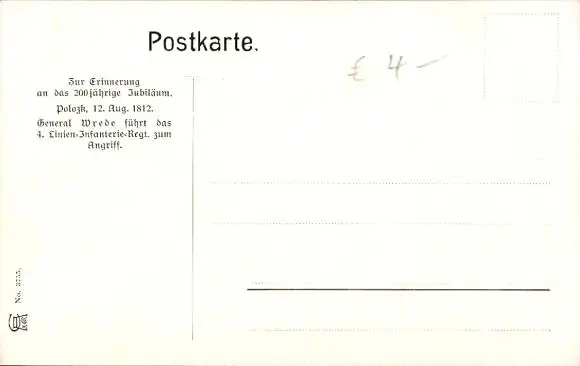 Künstler Ak Polazk Weißrussland, General Wrede, 4. Linien Inf Regt, 12. August 1812