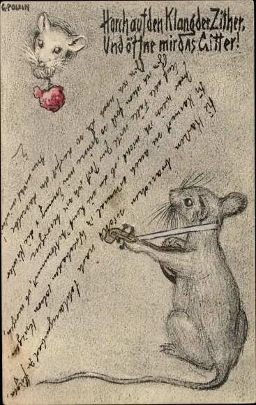 Künstler Ak Polein, G., Horch auf den Klang der Zither, vermenschlichte Mäuse