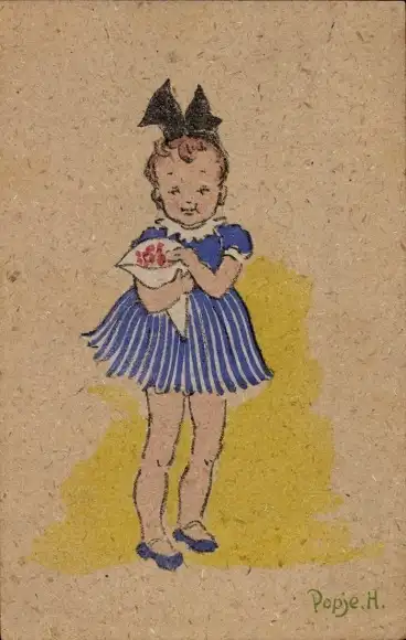 Künstler Ak Popje, H., Mädchen mit Süßigkeiten in einer Papiertüte