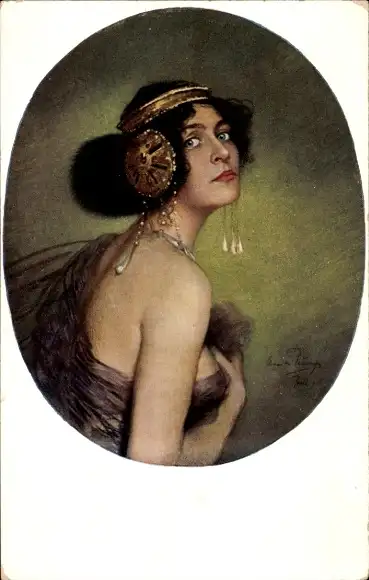 Künstler Ak Portrait einer Frau, Kopfschmuck