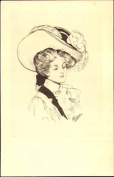 Künstler Ak Portrait einer Frau mit Hut, Fififred